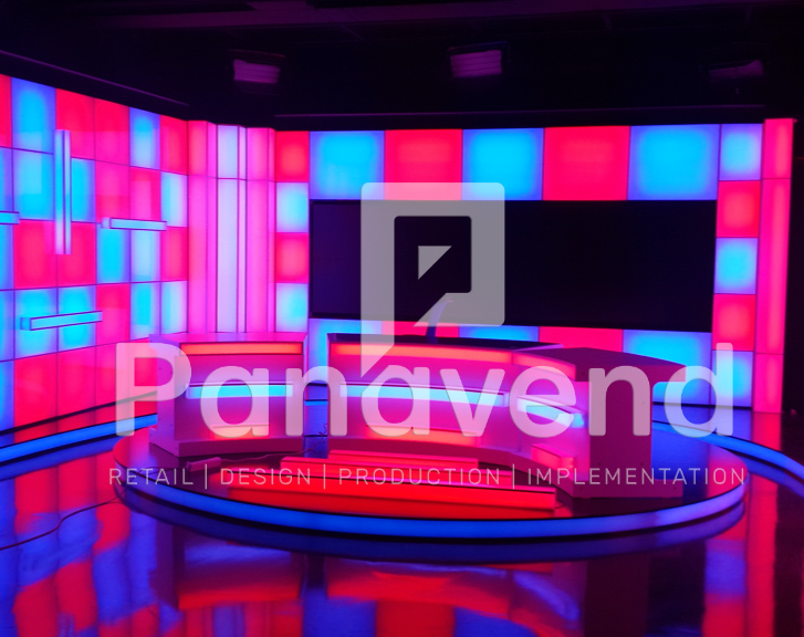 Our solutions include shop-in-shops, kiosks and also complex television studio furniture